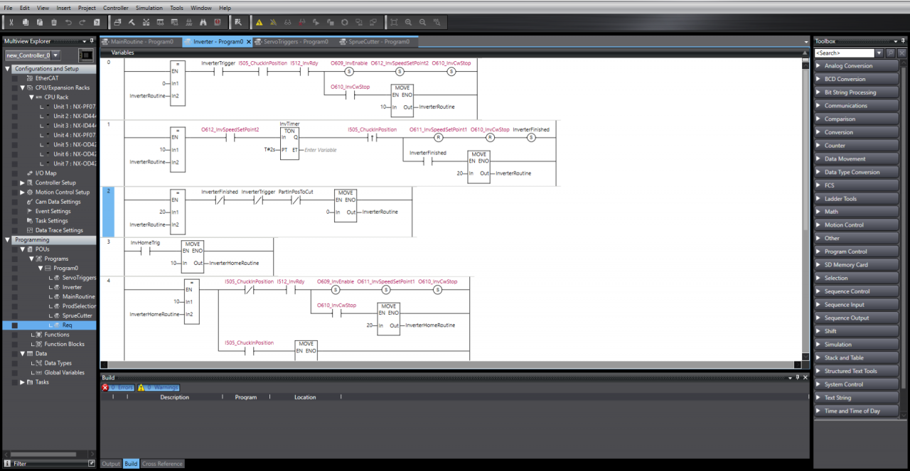 Programs can range from simple pick and place applications to full turnkey automation cells controlling not only multiple robots but also peripheral equipment.
